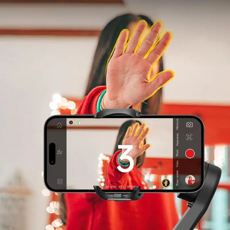 ردیابی AI در Aochuan Smart XE 3-Axis Gimbal، به ویژه حالت Face Tracking، چهره شما را به طور خودکار تشخیص داده و در کادر نگه میدارد، حتی در میان جمعیت شلوغ. این ویژگی برای ولاگ و مصاحبههای شخصی عالی است. حالت Body Tracking هم بدن کامل شما را از فاصله 20 تا 30 متری دنبال میکند، ایدهآل برای ضبط رقص، ورزش یا حرکات پویا. با کنترل ژستوری، بدون نیاز به لمس، میتوانید شروع به ضبط کنید – این کارایی، تولید محتوا را سریع و بدون دردسر میسازد.
