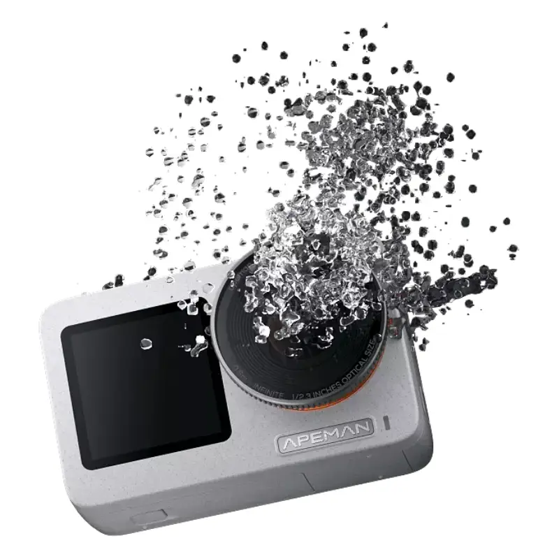 ACTION CAMERA APEMAN SEEKER ONE با وزن بسیار سبک فقط 117 گرم و طراحی الهامگرفته از سنگریزه (pebble-like texture)، هم زیبایی طبیعی دارد و هم دوام بسیار بالایی در برابر ضربه، گردوغبار و شرایط آبوهوایی نامساعد ارائه میدهد. این دوربین بدون نیاز به قاب اضافی تا عمق 5 متر (16 فوت) ضدآب است و در دمای تا منفی 10 درجه سانتیگراد بهخوبی کار میکند. سیستم خنککننده بهبودیافته (17% بهتر از مدلهای مشابه) باعث میشود بتوانید مدت طولانیتری فیلمبرداری کنید بدون اینکه نگران داغ شدن بیشازحد دستگاه باشید.