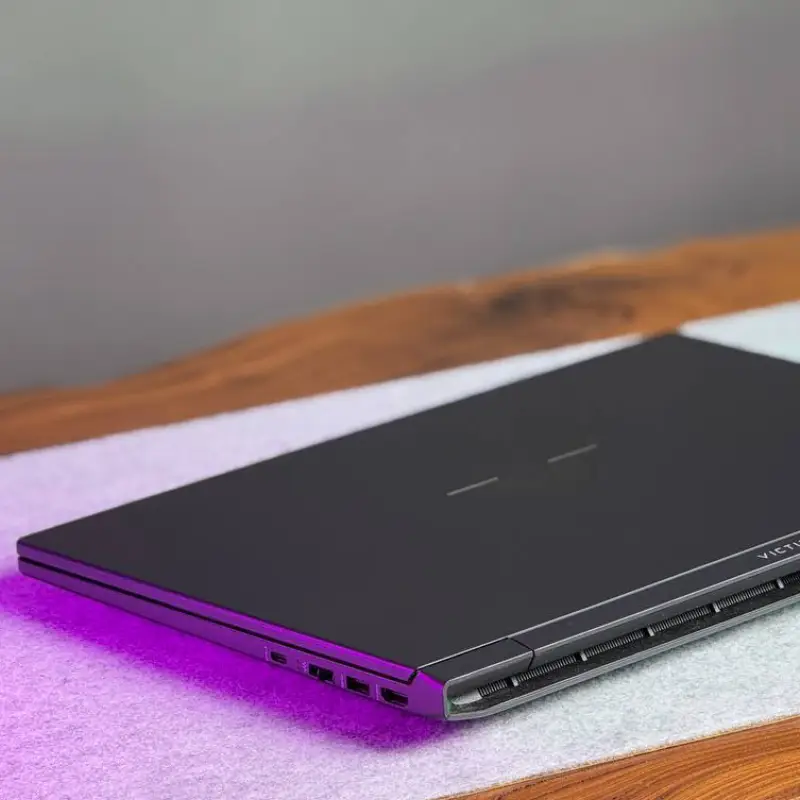 برخلاف خیلی از لپ تاپهای گیمینگ که پر از نور RGB و طراحی عجیبغریب هستن، Victus 16 ظاهری مینیمال و شیک داره. بدنه پلاستیکی مقاوم با رنگ Mica Silver یا Performance Blue، لوگو V کوچک روی درب، و لولاهای محکم. وزن ۲.۳ کیلویی باعث میشه راحت ببریدش دانشگاه یا کافه. پورتها کاملاً کاربردی هستن: HDMI 2.1 برای مانیتور ۴K، USB-C با پشتیبانی DisplayPort، کارتخوان SD که برای عکاسها عالیه.