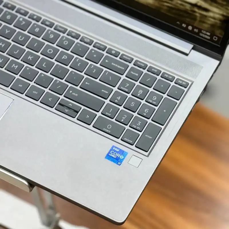 صفحه نمایش با لولاهای محکم تا 180 درجه باز میشود، و کیبورد فولسایز با نامپد، تاچپد دقیق و بکلایت سفید، تجربه تایپ راحت را فراهم میکند. هرچند کیبورد کمی آفسنتر است، اما کلیدها با سفر 1.5 میلیمتری، فیدبک عالی میدهند. وبکم 720p با HP Noise Reduction برای جلسات ویدیویی واضح، و اسپیکرهای Bang & Olufsen با Dolby Atmos برای صدای غوطهورکننده، طراحی را کامل میکنند.